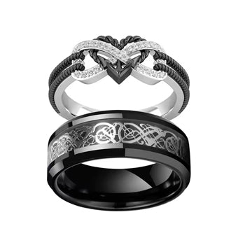 Estos anillos góticos estan diseñados para parejas que fusionan elegancia y oscuridad. Cada pieza es única, pensada para almas que se reconocen en lo profundo. No son solo anillos… son un vínculo eterno para quienes aman con intensidad